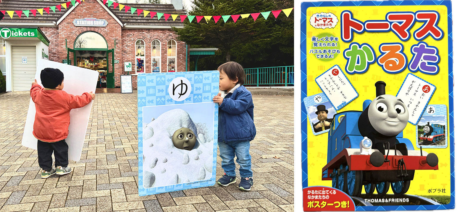 本イベントでは、ポプラ社より発売中の『トーマスかるた』 を原案にした、 通常の約64倍(約60cm×84cm)の「超BIGかるた」を使用します。目の前に現れる巨大なかるたは、まさに圧巻。国内ではトーマスランドでしか体験できないスペシャルな遊びに、お子様はもちろん、大人も思わず歓声を上げること間違いなしです。